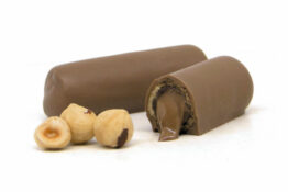 Γκοφρέτα με πραλίνα φουντούκι και ολόκληρα φουντούκια σε σοκολάτα γάλακτος